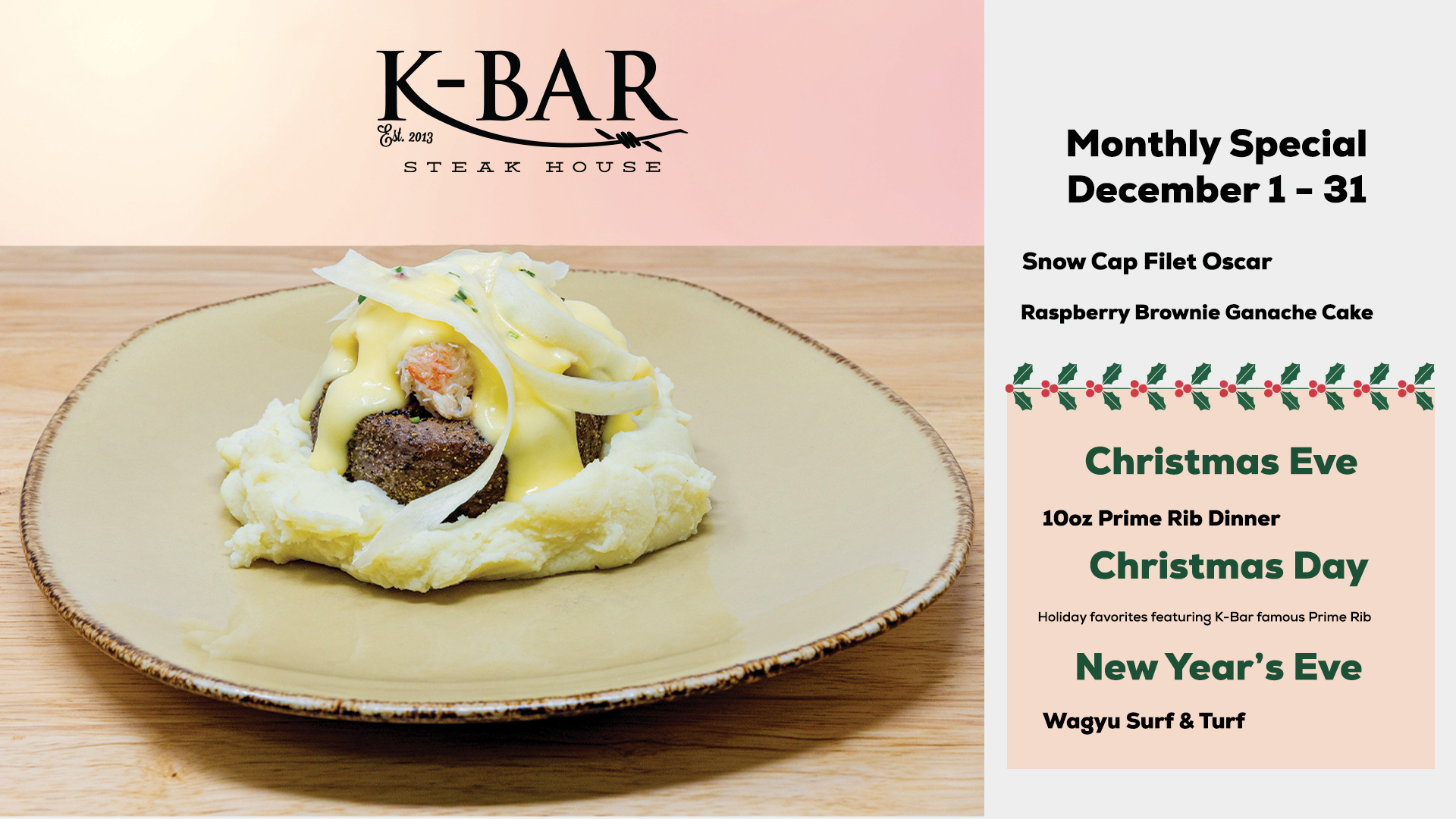 K-Bar Steak House December Specials