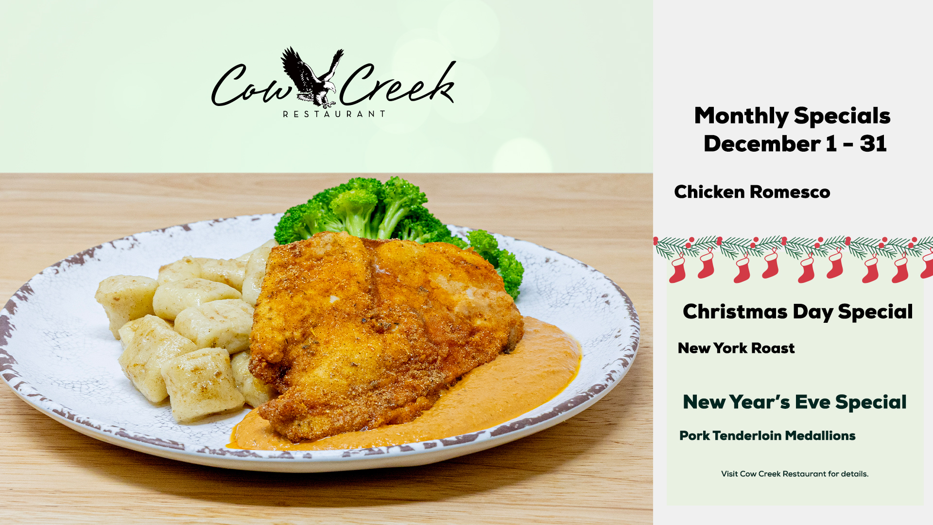 Cow Creek Restaurant December Specials