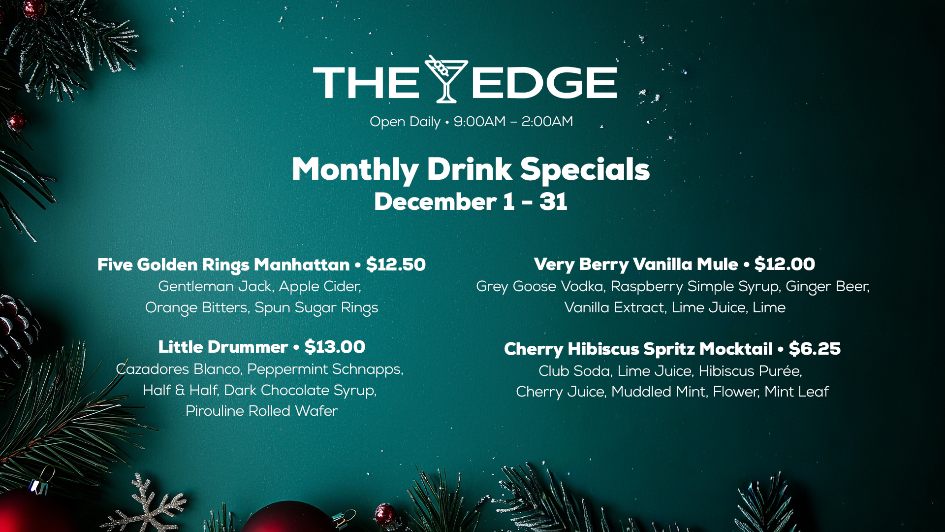 Edge Bar December Specials