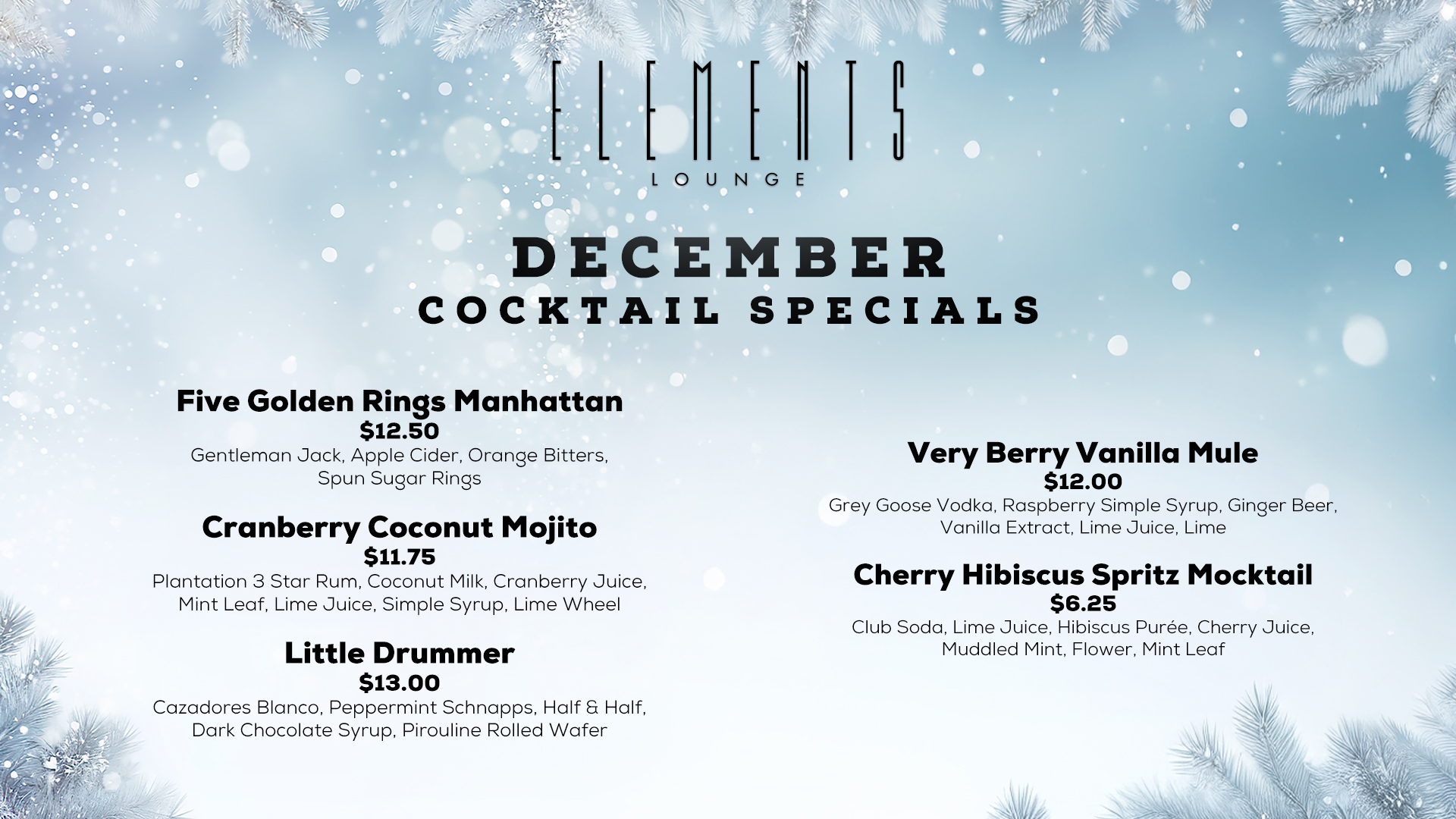 Elements Lounge December Specials