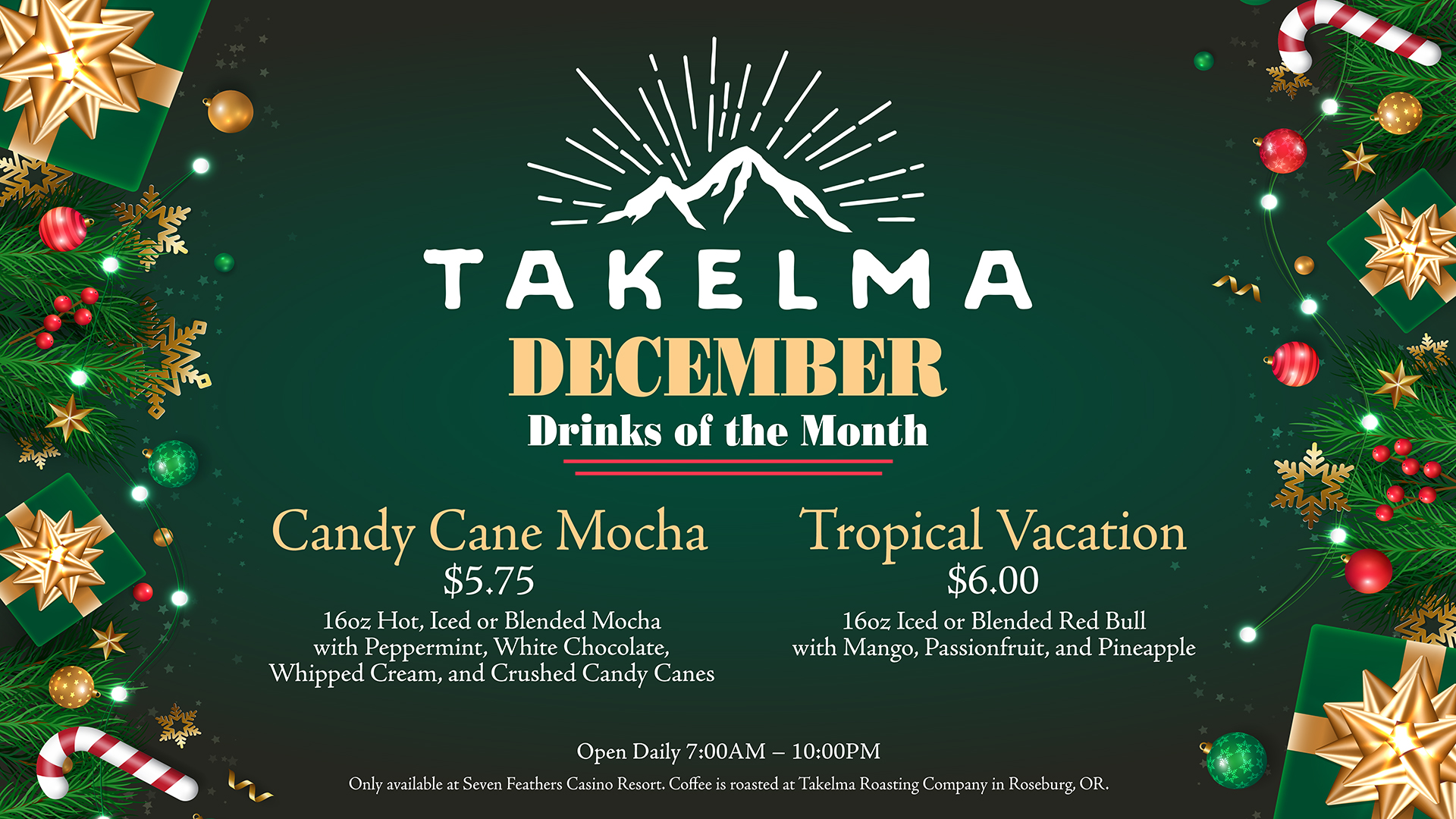 Get in the holiday spirit with a Cany Cane Mocha or Tropical Vacation