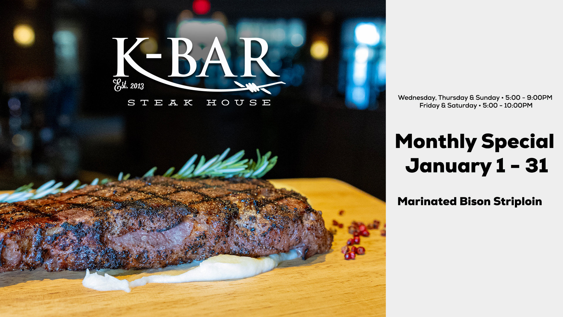 K-Bar Steak House January Specials