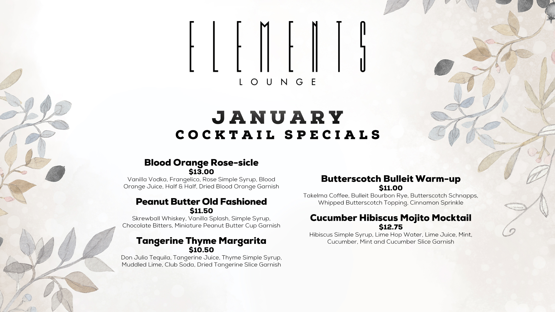 Elements Lounge January Specials