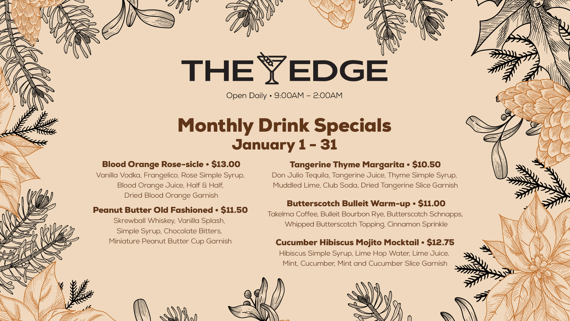 Edge Bar January Specials