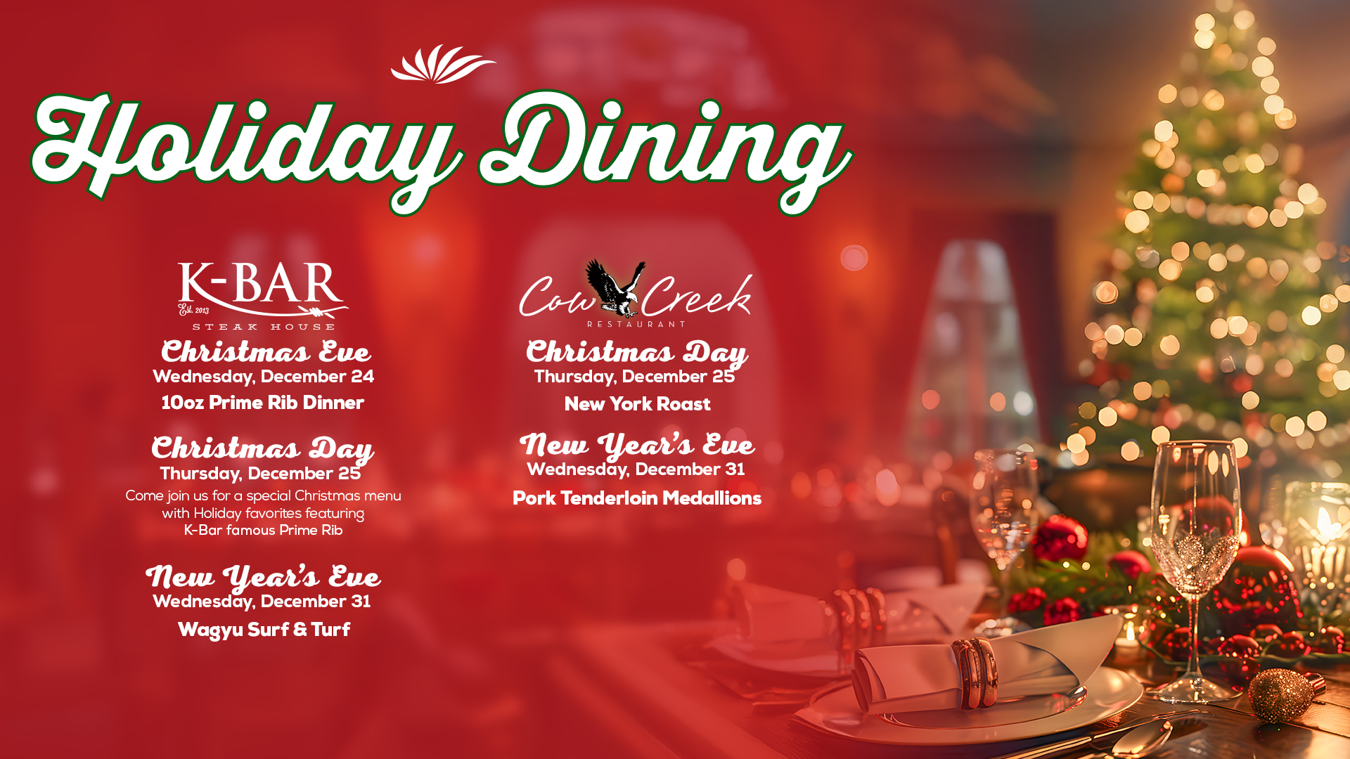 That’s just the tip of the iceberg. Rally the family and head on down to Cow Creek Restaurant for a great dining experience.