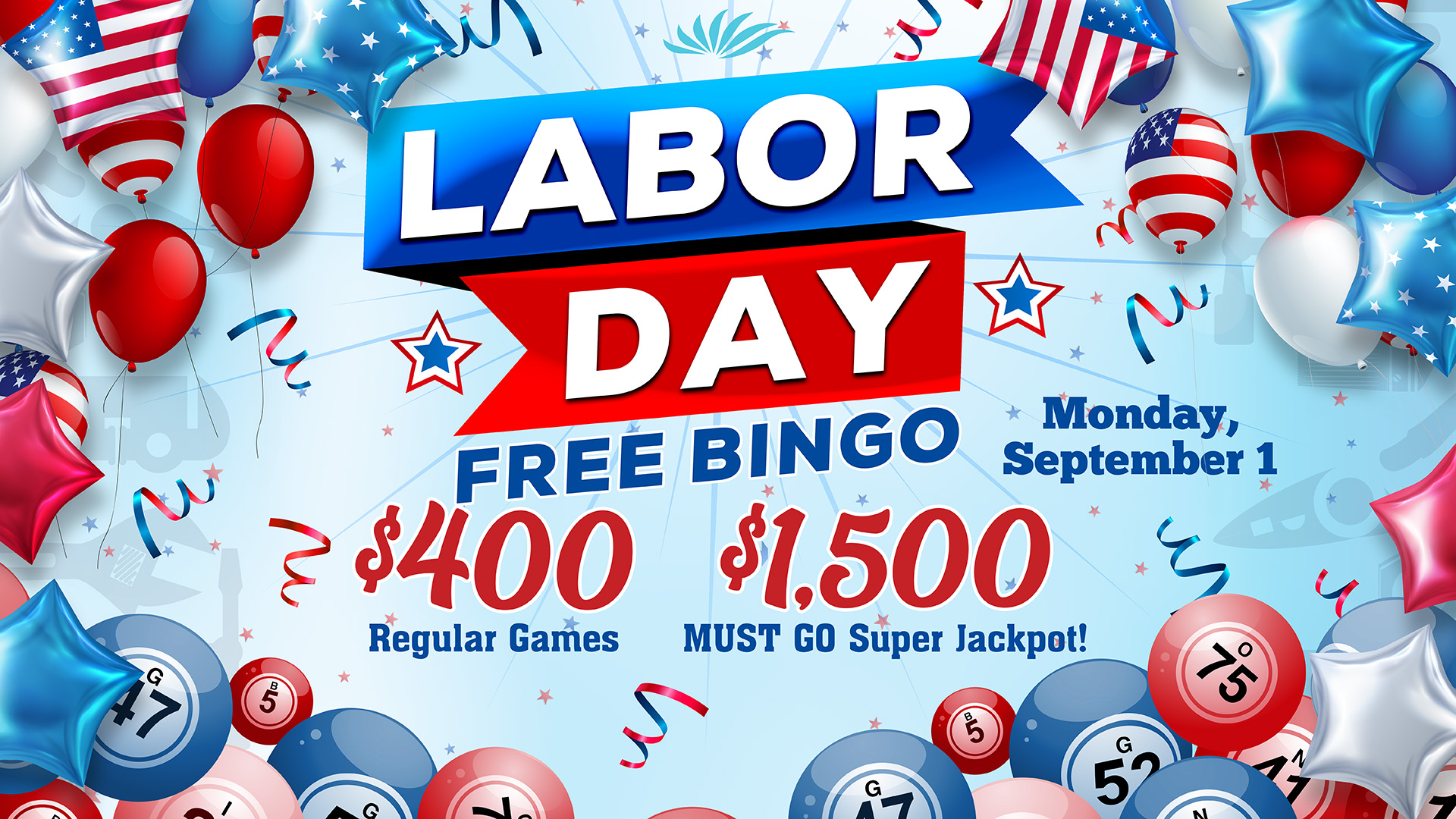 Monday, September 1 Doors open at 9:00AM. Admission sales start at 11:00AM. Games begin at 1:00PM. Special Session for this day only. Join us for $400 Regular Games and a $1,500 MUST GO Super Jackpot! Buy-ins: Paper $7 (one pack plus one FREE), Electronic $21 (three packs plus one FREE), Extras $7 Visit […]